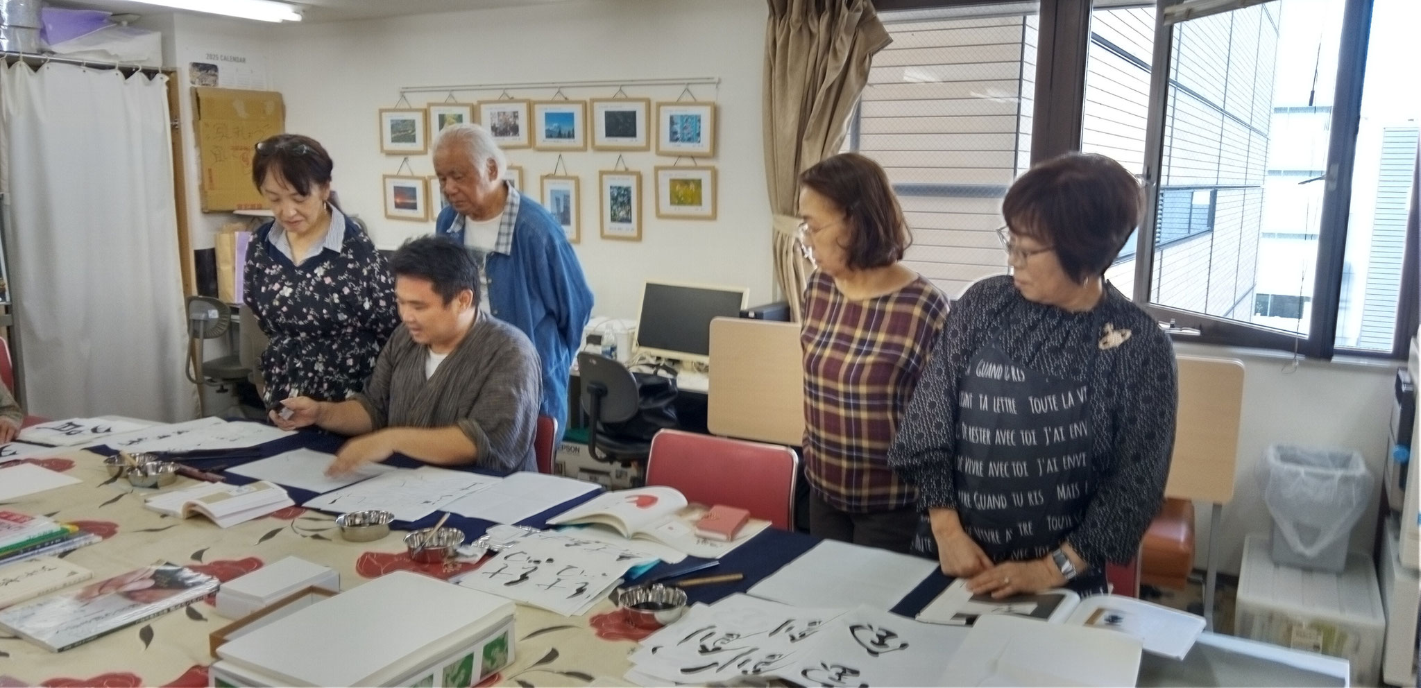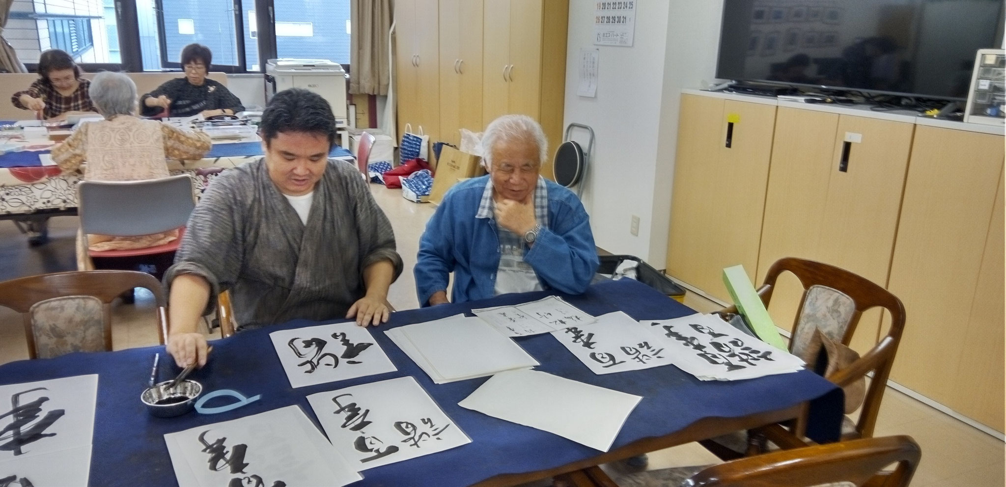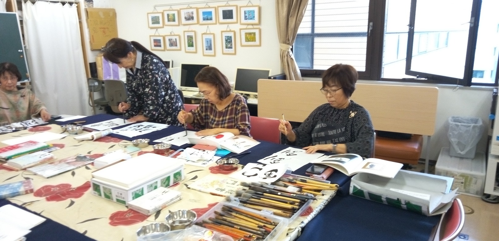 冬の展示会に向け各自どのような作品を出品するか構想を練りながら書道を開始しました。
